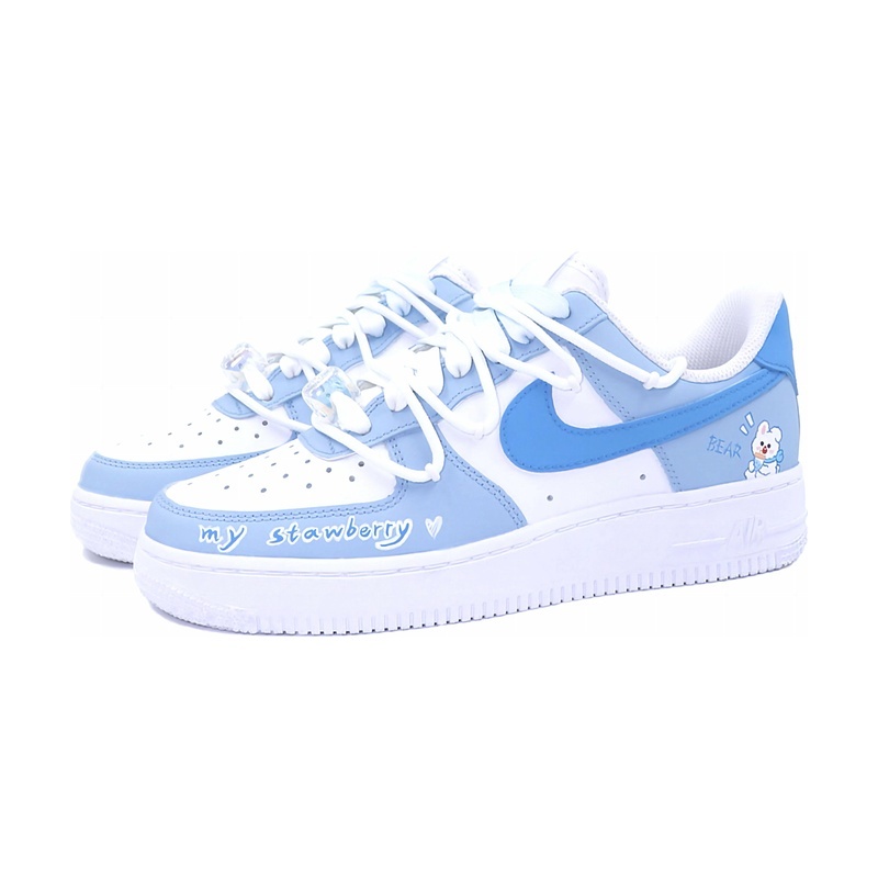 Custom Air Force 1 Shoes Blue White Sea Salt Milk Rabbit