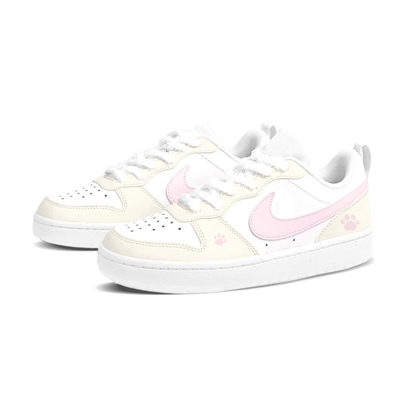 Custom Court Shoes Cream Pink Cat Paw